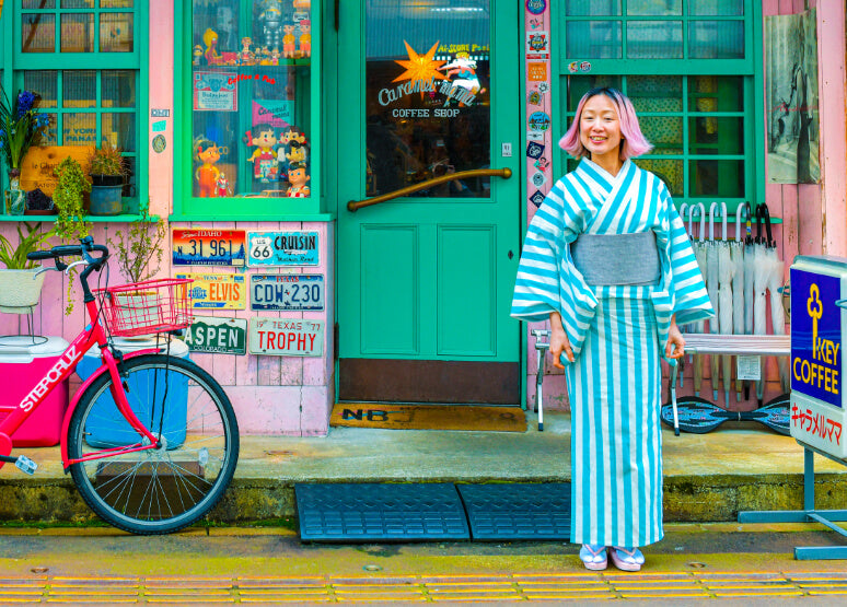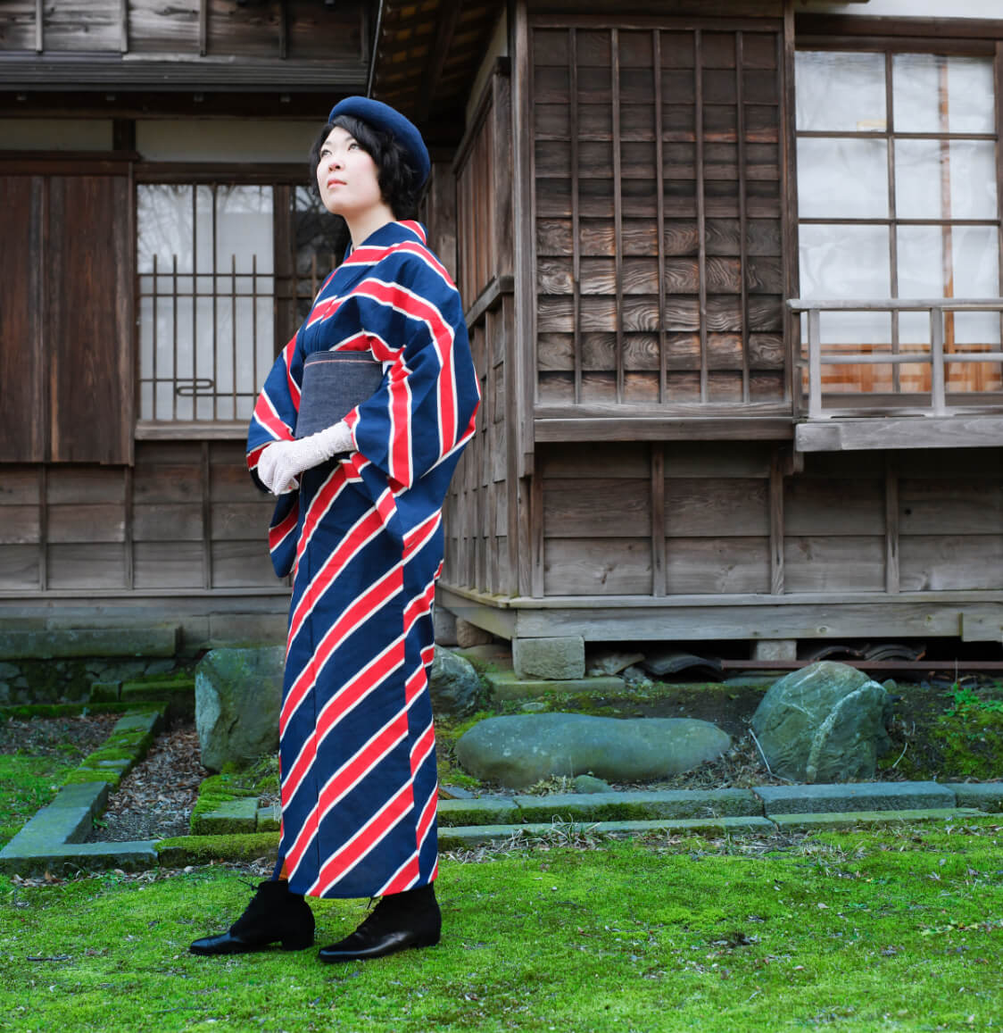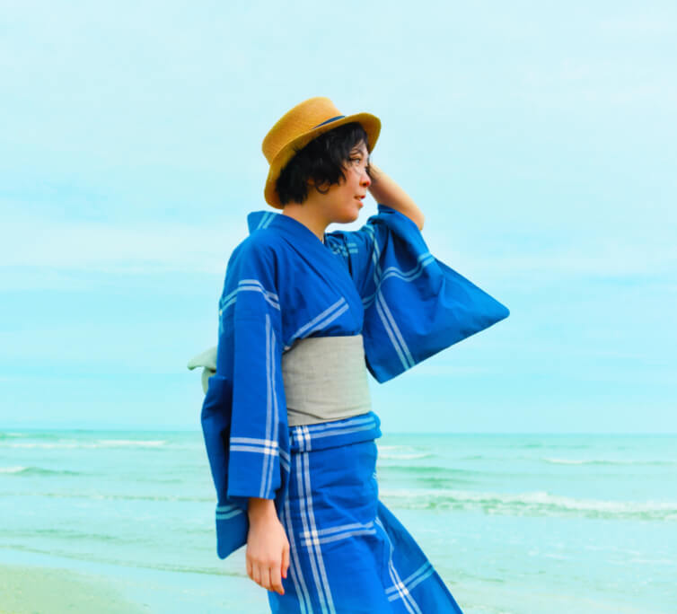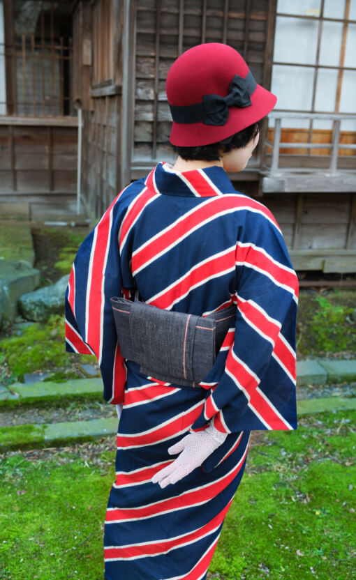 刺し子バッグ大 薄松煙×濃いグレー(墨黒)